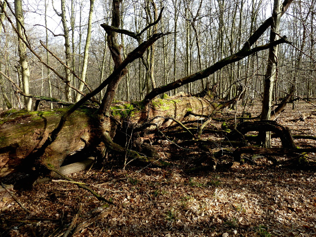Viel weniger bekannt sind die Vorkommen in den Bach- und Flusstälern, die den Harzrand durchschneiden. Dazu gehören zum Beispiel das Siebersteintal und das Amtmanntal. Diese Vorkommen sind unstrittig Wildvorkommen - der Ursprung des Vorkommens im Zehling könnte auch auf eine vor langer Zeit erfolgte Anpflanzung zurückgehen. Der Bach im Amtmanntal mündet in den Ballenstedter Schlossteich. Durchwandert man dieses Tal bis hin zu den Quellbereichen, sind an vielen Stellen sowohl im Bachgrund, auf angrenzenden Wiesen als auch in dunklen kleinflächigen Erlenbrüchen kleinere Vorkommen zu entdecken, die in den letzten Jahren offensichtlich eine Vergrößerung erfahren und so in der Summe dem Zehlingvorkommen Konkurrenz machen. DieAmtmanntal Bestandszunahme könnte eventuell eine Auswirkung milderer Winter sein. Es gelangen mehr Keimlings-pflanzen zur Entwicklung. Zu beachten ist, dass wir uns im Naturschutzgebiet „Burgesroth – Bruchholz“ befinden und hier das Wegegebot zu befolgen ist. Zum Quellbereich gehört auch der Forstort „Armer Heinrich“. Neben einer Quellwiese mit einem Märzenbecher-Restbestand steht hier ein gewaltiges mittelalterliches Sühnekreuz. In der Nähe befindet sich ein alter Hutewald. AlteicheDavon zeugen die letzten verbliebenen Eichen. Umgestürzte und sich langsam zersetzende Baumriesen (Bruchholz !) geben dem nun stockenden sommerdunklen Weißbuchen-Bestand ein besonderes geheimnisvolles Gepräge. Auch in diesem Waldteil breitet sich inselartig der Märzenbecher aus. Tief im Wald verborgen und fern jeder menschlichen Einwirkung ist hier ein besonders großer Bestand zu entdecken.