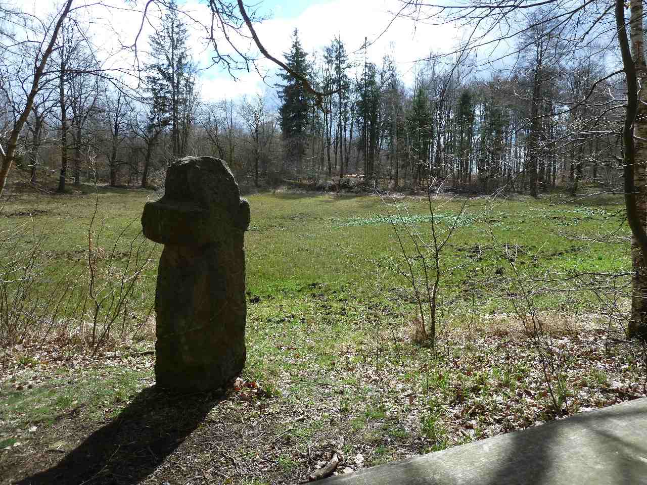 Diese Flächen wurden inzwischen standortgerecht mit Eichen aufgeforstet. n der Nähe verdeutlicht eine nun umgebrochene alte Rieseneiche den Werdegang in der Natur. Die Wanderung durch das „Kleine Bruchholz“ führt zum Schluss zum „Armen Heinrich", einem Sühnekreuz am Rande einer der zahlreichen Waldwiesen im Schutzgebiet