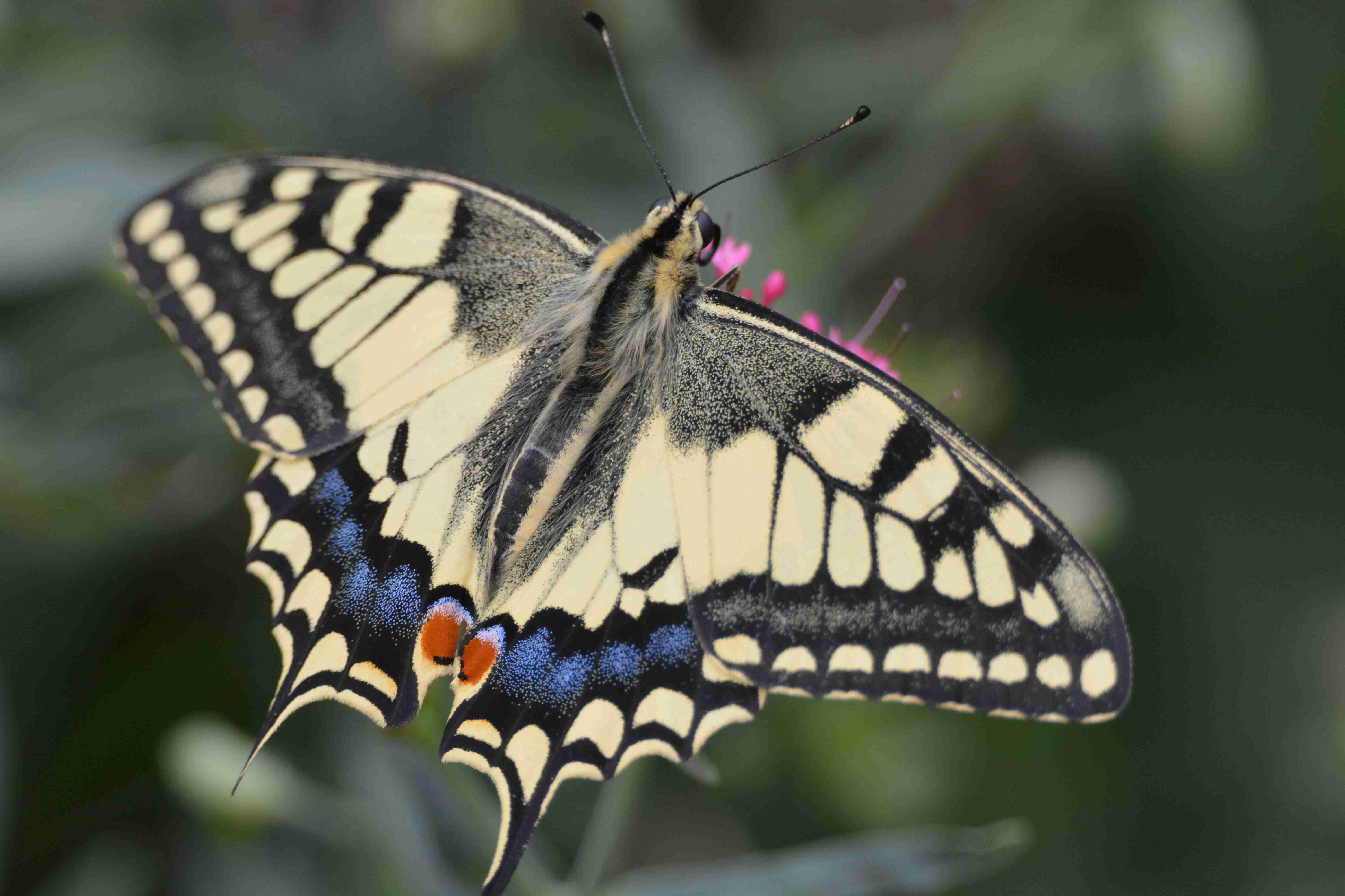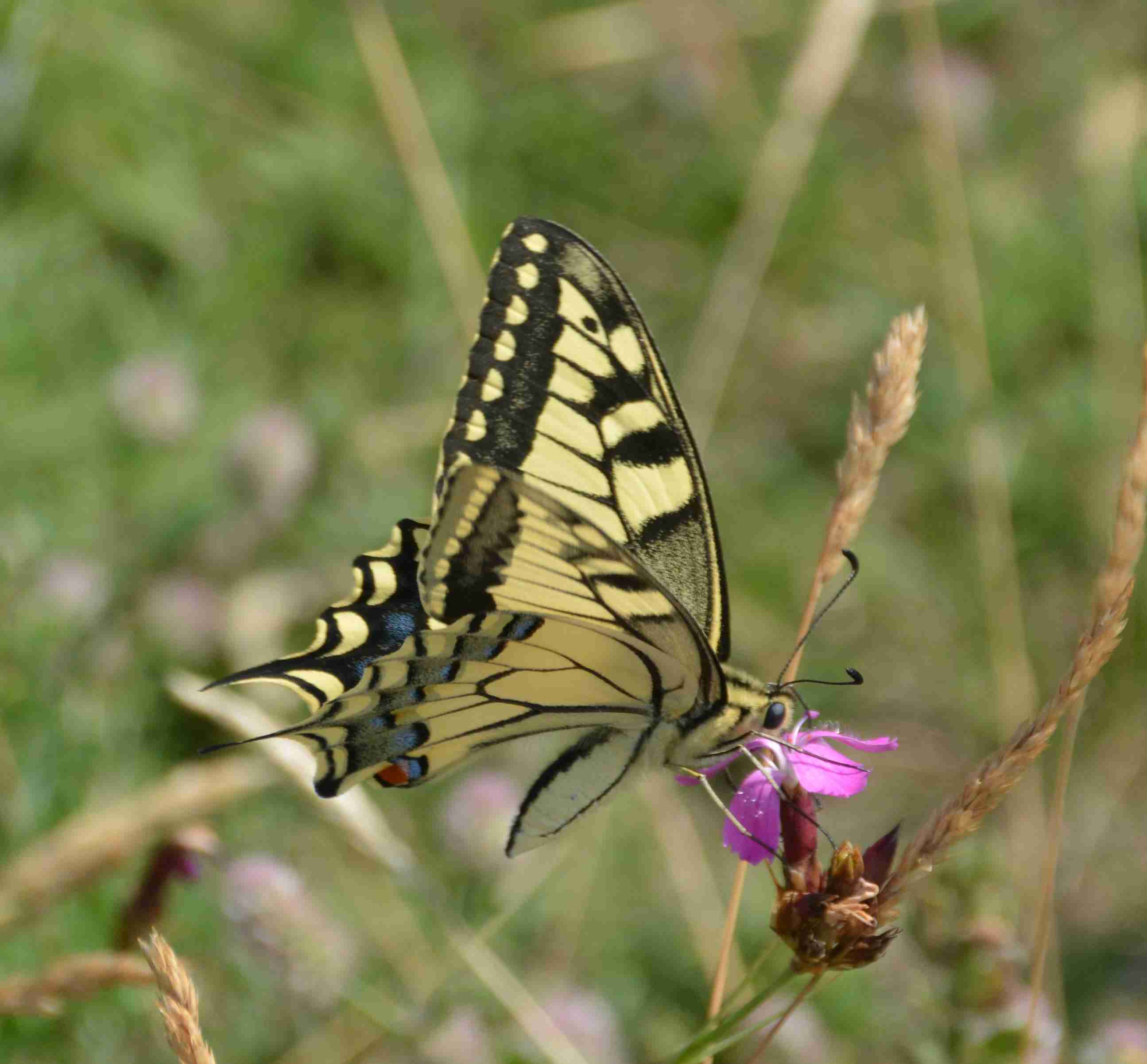 Der Schwalbenschwanz (Papilio machaon L.) ist ein auffälliger und farbenfroher Schmetterling und damit einer der schönsten Schmetterlinge unserer Heimat. Er gehört zur Familie der Ritterfalter (Papilionidae), ebenso wie der in unserer Gegend sehr selten vorkommende Segelfalter. Der eigentliche Artenreichtum der Ritterfalter liegt aber in den Tropen.
