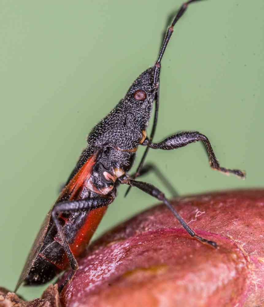Lindenwanze Oxycarenus lavaterae ImagoDieser umgibt und schützt ein feines Stechborstenbündel, das aus 4 Borsten besteht. Während der Rüssel beim Einstechen außerhalb der Pflanze bleibt, bohrt sich die Wanze mit den beiden äußeren Borsten das Pflanzengewebe. Diese als Bohrer dienende Borsten umhüllen zwei inneren Stechborsten, die miteinander verzahnt sind und zwei Röhren bilden, eine etwas größere zur Pflanzensaftaufnahme und eine zur Speichelabgabe.