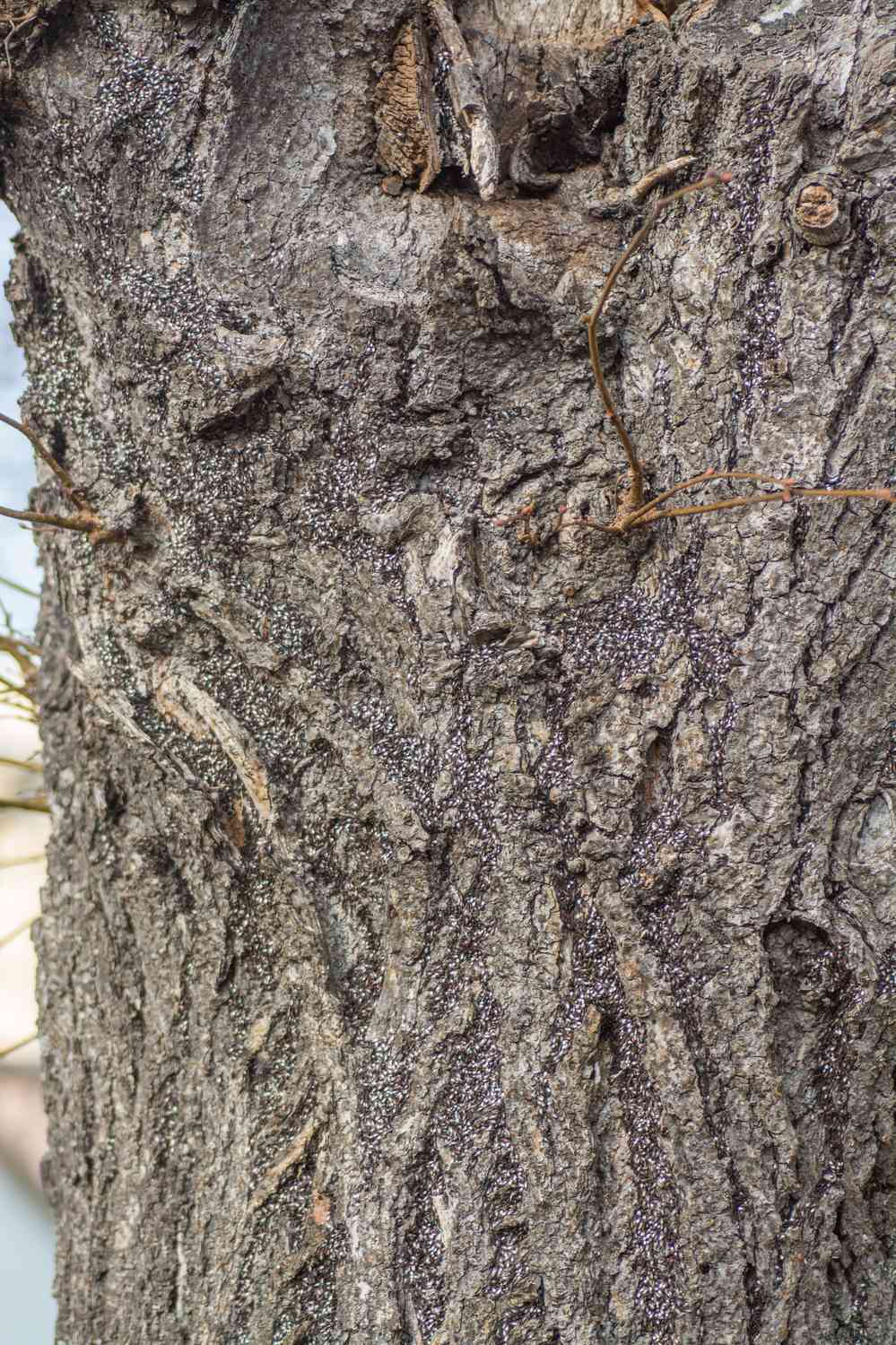 Jetzt im Winter lassen sich an verschiedenen Winterlindenstämmen im Stadtgebiet von Quedlinburg große Kolonien von Lindenwanzen beobachten, ein sehr beeindruckendes und relativ neues Phänomen  für unsere Region. (Abb.1).